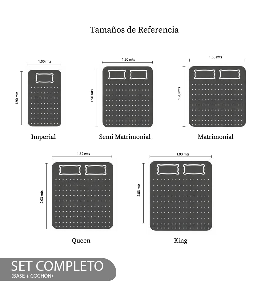 Soporte: Tecnología de resortes Bonell serie 405 electro templados con un 30% más de resortes que brindan mayor soporte en el colchón con estructura perimetral de espuma firme Foam Encased